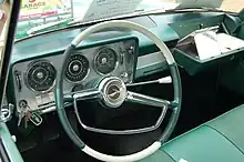 The Wagonaire roof design was inspired by Stevens' 1959 Scimitar concept car built in Stuttgart, West Germany, by Ruetter for the Olin Mathieson Chemical Corporation.[3] There were three full-sized Chrysler-based vehicles built for display at the 1959 Geneva Motor Show to promote use of aluminum in building cars.[4] One of these was a hardtop (with no "B-pillar") station wagon with a sliding roof panel.[5][6] In 1962, Stevens developed prototypes for a new line Studebakers that included a station wagon named "Skyview" that featured a partially retractable rear roof section.[1] However, the automaker had no resources to develop new cars so Stevens came up with low-cost updates to modernize the Lark line.[1]