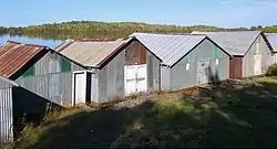 The Stuntz Bay Boathouse Historic District comprises a row of 143 boathouses on Lake Vermilion in Breitung Township, Minnesota, United States. They were mostly built in the first half of the 20th century by employees of the adjacent Soudan Iron Mine. The mining company provided the lots to employees as a reward for their years of service, and the miners did their own construction. Most of the boathouses were built with tamarack logs and scrap corrugated metal from the mine property. Boating and fishing were major pastimes for the mine employees and their families in their leisure hours, and the mining company promoted access to outdoor recreation as a perk of employment.[2] The Stuntz Bay Boathouses were listed as a historic district on the National Register of Historic Places in 2007 for their local significance in the themes of architecture, entertainment/recreation, industry, and social history.[3] They were nominated for illustrating the personal lives of the miners and vernacular metal architecture.[2]