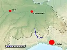The Stura di Ovada is a 32.9-kilometre (20.4 mi) stream of Liguria and Piedmont (Italy); it is the main tributary of the Orba.