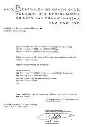 "We, Beatrix, by the Grace of God, Queen of the Netherlands, Princess of Orange-Nassau, etc., etc., etc."