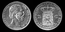The obverse Dutch inscription reads WILLEM III KONING DER NED[ERLANDEN] G[ROOT] H[ERTOG] V[AN] L[UXEMBURG], meaning "William III, King of the Netherlands, Grand Duke of Luxembourg".