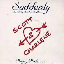 "Suddenly" is a song recorded by Australian singer Angry Anderson for his debut solo album, Beats from a Single Drum. The track was first released via Mushroom Records in Australia during July 1987. It was written by Anderson, Andy Cichon and Kevin Beamish, with the latter serving as the song's producer. "Suddenly" was used in the Australian soap opera Neighbours during an episode that featured a wedding. It was selected by Neighbours cast member Kylie Minogue, who thought the song was lyrically "beautiful". The song's release coincided with the broadcast, and it reached number two on the ARIA Singles Chart. "Suddenly" peaked at number three on the UK Singles Chart. In addition, the song also charted in the European countries Ireland, Belgium and Netherlands. In 2012, Anderson stated that "Suddenly" is the best song he has ever written.