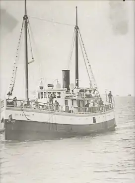 In 1906, the only regular shipping line running to Tillamook was the Pacific Navigation Company, owners of Sue B. Elmore.[17] There were only five commercial shipping vessels which crossed the Tillamook bar in 1906, two of which were smaller, Robarts (24 net tons) and George R. Vosberg (65 net tons).[17] Only three vessels larger than 100 net tons crossed the bar in 1906, the Elmore, Abbie (138 net tons), and Coquille River (265 net tons).[17]