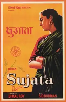 Sujata is a 1959 Hindi language Bimal Roy film. It stars Nutan and Sunil Dutt in lead roles, supported by Shashikala, Lalita Pawar, Sulochana Latkar and Tarun Bose. Based on a Bengali short story of the same name by writer Subodh Ghosh,[1] the film explored the situation of caste in India.[2] The music is by S. D. Burman and the lyrics by Majrooh Sultanpuri.[3] It was entered into the 1960 Cannes Film Festival.[4]