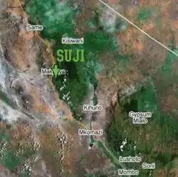 Suji is a small village in the Pare Mountains, in the Kilimanjaro region of north-eastern Tanzania. According to the 2002 census, the village has a population of around 8,072 [1] (Male: 3,974, Female: 4,098). The latest census conducted in 2022 shows that there is an about 50% decline in population. Both sexes (4,681); Male (2,285); Female (2,396). The majority of the villagers are of the Pare tribe (legend holds that they moved up the mountains as a security measure in a similar way other villages built forts. Their main antagonists were Maasai warriors who they call 'Kwavi'. The village is situated approximately 20 km from Makanya, a town on the main Dar es Salaam - Moshi road. In terms of religion, the majority of the residents are Seventh Day Adventists.