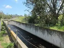 Construction of Sulphur Creek Dam was completed in 1966 by the Moulton Niguel Water District. The lake was known as Sulphur Creek Reservoir and used to store treated reclaimed water for irrigation. In 1970 the Orange County Flood Control District purchased the dam and reservoir in conjunction with the city of Laguna Niguel for use as a park. The reservoir was stocked with game fish and opened to public use in 1973, and a boat dock and concessions established in 1976.[2] The dam has suffered from siltation issues caused in part by urban runoff in Sulphur Creek which brings mud and debris into the reservoir. The silt accumulation led to a lake "turnover" in 1976 which stirred up debris in the lake, killing over 2,000 fish. Another such event happened in 1981, killing 1,500 fish.[3]