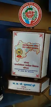 Suman Muthe is the recipient of more than 50 awards from different institutions and organizations from India and Internationally. She has been conferred the Ahilyadevi Holkar Award by the Government of Maharashtra in the past, has also been honoured with Siddha Sewa award by Swami Hardas Foundation in Pune. The foundation has been actively working in India since 1990 and has an active presence in many other countries. The award has been constituted to felicitate those who have shown exemplary contributions to the society. The "Siddha Sewa" award by Swami Hardas Foundation, Pune is her 22nd award in her list of recognitions. In the past she has been honoured with Amrutratna award for the work done for tribal women, Patrashri award for outstanding literary contributions, Patramaharshi award by Journalists Association, National Integration Fellowship award etc. Her participation in various rural projects for conservation of water, tribal women education, childcare education is well known. Besides doing grassroots work, she has written books, poems, delivers lectures and is a prolific writer in Marathi print media.
