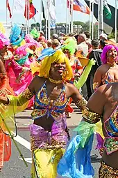 Although the street parade attracts the most visitors the Zomercarnaval is a multi-day event. A week prior to the street parade the new Queen is elected in the official Zomercarnaval Queen Election.[2] On the Thursday after the election the Zomercarnaval Beach Party is held at the Stand aan de Maas, a small beach created in the city center of Rotterdam. Several brass bands and DJ's show up and the newly chosen Queen is also present.[3] On Friday evening the Battle of Drums is held, an event in which several brass bands compete to be named the official Zomercarnaval brass band and earn a spot in the parade the day after as well as in the Notting Hill Carnival in London. The preliminaries for the Battle of Drums are held at the Dunya Festival in Rotterdam.[4] The street parade which is always held on Saturday includes brass bands and thousands of dancers. During and after the street parade there are two live on stage concerts at the Coolsingel and the Churchillplein until late in the evening.[5][6]