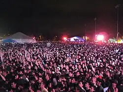 The Sun God Festival is an annual campus festival at the University of California San Diego that takes place every spring quarter. The daytime festival is produced by the AS Concerts & Events office and paid for by the student body activity fee. The festival has featured a vast variety of entertaining elements since its inception, including a cross-campus fair, lounge areas, and multiple stages which have featured art performances, live comedy, student talent, DJ sets, and a mix of underground and commercially successful musical performers. All of this occurs on RIMAC Field.[1] The main stage is traditionally opened by the winner of the Battle of the Bands, a competition that UCSD student musicians perform in leading up to the festival.[2]