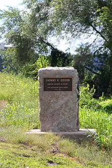 | First Electric Light | First successful use of a three-wire electric lighting system was made July 4, 1883, in the City Hotel building in Sunbury. Thomas A. Edison directed the work. The Edison Electric Illuminating Co. plant was at 4th and Vine Street. | Front St. (PA 147), just N of Chestnut St., Sunbury | 1947HM00289 |