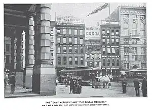 In May 1893, Richard Croker, a leader of New York City's Tammany Hall political machine, jumped into the newspaper field and created The Daily America devoted to politics to trumpet Tammany's views (though it also covered sports; Croker was a big horse racing enthusiast).[34] The other Democratic papers in the city balked at the new competition, however, and Croker turned over the paper to the Mercury by the end of the year.[35] In January 1894, The New York Times reported that the two papers had "consolidated" (and that some of "the gentlemen" involved in the America would retain an interest) and would henceforth be published as The Daily America on weekdays with the Sunday Mercury below in small type, and reversed on Sundays.[36]