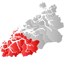 Sunnmøre (Urban East Norwegian: [ˈsʉ̂nːmøːrə], English: South-Møre) is the southernmost traditional district of the western Norwegian county of Møre og Romsdal. Its main city is Ålesund. The region comprises the municipalities (Norwegian: kommuner) of Giske, Hareid, Herøy, Norddal, Sande, Skodje, Haram, Stordal, Stranda, Sula, Sykkylven, Ulstein, Vanylven, Volda, Ørskog, Ørsta, and Ålesund.[1]
