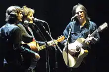 (L-R) Middleton, Fanning, and Haug performing an acoustic version of "Sunsets" on the Across the Great Divide tour on 8 September 2007.