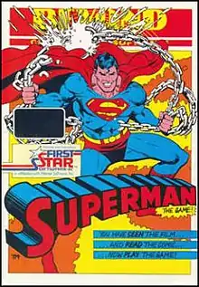 Superman: The Game is a 1985 video game designed by Fernando Herrera and published in the U.S. by First Star Software for the Commodore 64.[2] For European release, Superman was ported the Acorn Electron, Amstrad CPC, Atari 8-bit family, BBC Micro, and ZX Spectrum.