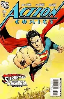 "Superman and the Legion of Super-Heroes" is a 2007 comic book DC Comics story arc written by Geoff Johns, illustrated by Gary Frank, which features the character Superman and the return of the pre-"Crisis on Infinite Earths" Legion of Super-Heroes. It ran in Action Comics #858–863 (late December 2007 – May 2008), this arc marked Geoff Johns' debut as a solo writer on Action, having previously written alongside Kurt Busiek and Richard Donner.