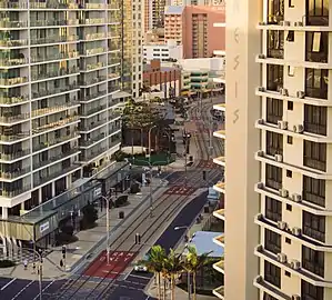 Surfers Paradise Boulevard is a street on the Gold Coast, Queensland in Australia. It is in the heart of the suburb of Surfers Paradise and is home to many retail shops and eateries. The G:link traverses the length of the road with multiples stations to serve the area around the road. It is the divide between the more family-friendly areas of Surfers Paradise to the east, which encompasses Timezone, Adrenalin Park and Ripley's Believe It or Not Museum, amongst other attractions; and the nightclubs and adult entertainment which tends to be concentrated in the area to the west.