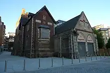Surrey Street Pumping Station is a Grade II listed pumphouse in Croydon, South London, England, that was built in four phases.[1] It is the site of a well that "had been more or less public ever since the town existed".[2] It was opened by the Archbishop of Canterbury on 11 December 1851,[3] making Croydon one of the first towns[$ 1] to have a combined water and sewage system under the Public Health Act 1848, and to Chadwick’s arterial-venous design. The water was pumped from the wells, up Park Hill to a cylindrical brick reservoir with a domed roof to provide a constant supply of fresh piped water.[3] Prior to its opening, the inhabitants of Croydon used the river Wandle, streams and shallow wells, which were often contaminated by seepage from privies and cesspools.[4] Parts of Norwood were served with water from the Lambeth Water Company, a private company established by an act of parliament in 1785 (25 Geo. 3. c. 89).[5]