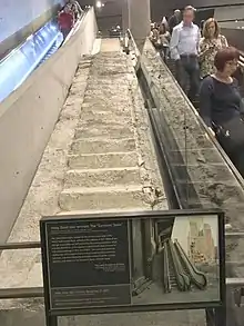 The Survivors' Staircase was the last visible remaining original structure above ground level at the World Trade Center site. It was originally an outdoor flight of granite-clad stairs and two escalators which connected Vesey Street to the World Trade Center's Austin J. Tobin Plaza.[1] During the September 11 attacks, the stairs served as an escape route for hundreds of evacuees from 5 World Trade Center, a 9-floor building adjacent to the Twin Towers. The staircase is now an important feature of the National September 11 Memorial & Museum.