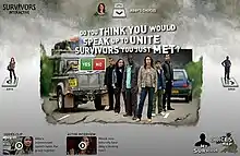 A website was launched to tie in with the series, entitled "Survivors Interactive", which included interviews with actors, clips from the programme and original character pieces-to-camera. The interactive component was based on visitors selecting characters from the show and then answering either/or dilemma-based questions, which are then profiled by what type of survivor they would make as they travel through the post-plague environment.[26]