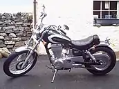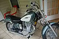 The LS650 Savage was the first cruiser manufactured by Suzuki in 1986. The Kawasaki Vulcan 400 entry-level cruiser with a V-twin engine was introduced the same year as the Suzuki Savage, and the Vulcan 500 LTD with a parallel-twin engine was introduced in 1990. One of the few small cruiser motorcycles available with a shaft drive as an alternative to either chain or belt final drive, the Yamaha Virago 535 was introduced in 1987. Honda launched the Shadow VLX, with a 583 cc V-twin for the 1988 model year to compete with the single-cylinder Savage. The Savage's persona was a bike that stayed out of harm's way, with a torquey engine (although underpowered for its displacement) that made few demands on the rider.[3][19][20][21]