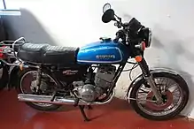 The 1974 MY also saw Suzuki introduce the GT125 to the motorcycling world. This model was similar in layout to the GT185 but with a shorter wheelbase and smaller engine displacement so shared only a few common parts. The rest of this model's equipment followed that of the GT185. The electric starter was deleted, probably in the interests of economy, which allowed a more attractive selling price in the very competitive "beginner" market that this model competed in. This model continued basically unchanged, excepting colours and trim items (the 'B' model in 1977 got a tail fairing), until the end of production with the 1977 MY. Some markets received 1978 MY (the 'EC' which had tail fairing & cast wheels) & there were MY 1979 & MY 1980 versions of this model with the name changing to RG125 X4. The final GT125s were updated and sold with cast wheels and a tail fairing. Suzuki listed the RG125 X4 in their sales literature until 1980 in continental Europe.