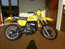 The initial 1977 PE250B proved rugged, well made and docile. The engine was effectively the 5-speed RM series motocross engine, with altered gearing, porting and a heavier flywheel, which produced only 28HP but had broader power and outstanding torque. This proved highly competitive and popular in all countries.[9][10][11]