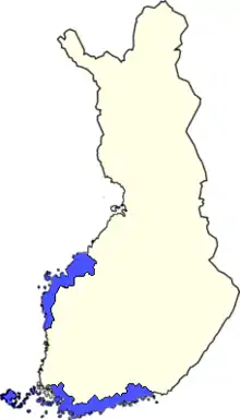 - Svenska Österbotten (Pohjanmaa), eastern coast of the Gulf of Bothnia from Sideby (Siipyy) to Karleby (Kokkola);