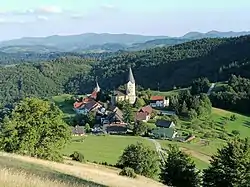 The parish church in the settlement is dedicated to the Mother of God and belongs to the Roman Catholic Diocese of Celje. It predates its earliest mention in written documents in 1480.[3] Next to the church is a chapel dedicated to the Holy Cross. It dates to the late 15th century, but was extensively rebuilt after a fire in 1714 that destroyed most of the village.[4]