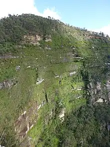 The Blue Mountains on average typically receives greater than 1,000 millimetres (39 in) of rainfall per year;[8] the low subsurface permeability, combined with the slowed runoff, assists in the formation of these biodiverse swamp communities in Blue Mountains.[9]