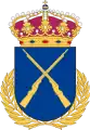 The coat of the arms of the Swedish Infantry Officers’ College (Infanteriets officershögskola, InfKAS) 1981–1995. This coat of arms was later used by the Combat School Middle (Stridsskola Mitt, SSM) 1995–1999. Blazon: "Azure, two muskets in saltire or. The shield surrounded by an open chaplet of laurels or".[5]