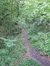 In 1988 there were still many rhododendrons, a lone monkey puzzle, the cedar of Lebanon, fragments of Pulhamite ornaments and the folly.[19] The trackbed was partly built on, but elsewhere it has reverted to nature.[10] Part of the route adjacent to the Horniman Museum and Gardens is now a "Railway Nature Trail", maintained for the museum by the Trust for Urban Ecology. In Sydenham Hill Wood, its path can be followed from the footbridge on Cox's Walk to the entrance of the Crescent Wood tunnel. The tunnel emerges again to the north of Wells Park Road. On the western edge there is a small stream in the woods called the Ambrook, formerly a tributary of the River Effra.[40] From here it flows across the golf course, then alongside Cox's Walk, under Dulwich Common and into the lake in Dulwich Park. In wet weather it rises above the drains and flows along the road around Dulwich Park by Frank Dixon Way.[41]
