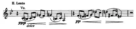 The second movement in which Reger is explicitly invoked, is almost a self-contained movement with its own introduction. It consists of a theme and five variations. It is playful, festive and dance-like. The Scherzo itself is a three-part structure based not only on the variation theme but also on the 1st movement's solo violin theme. The movement ends with a sixth variation followed by a fugue. Its model is probably the fugal finale of Strauss' Sinfonia domestica. Each subject in the fugue proves to be derived from earlier themes.[1][2]