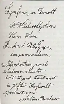 Anton Bruckner's Symphony No. 3 in D minor, WAB 103, was dedicated to Richard Wagner and is sometimes known as his "Wagner Symphony".[1] It was written in 1873, revised in 1877 and again in 1889.