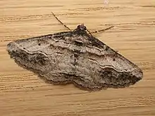 The adult moths of this species are brown with a number of darker zigzag lines on each wing. The wingspan is about 3.5 cms. [2]