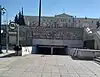 The tram stop of the same name is located south of Syntagma Square, adjacent to Vasilissis Amalias Avenue: it opened on 19 July 2004, as part of the initial scheme for the 2004 Summer Olympics.[2][3] The tram stop was a single-track terminus with a side platform until 10 December 2018, and reopened on 14 March 2019 with a dual-track layout and an island platform.[4] However, the tram stop (along with Zappio, Leoforos Vouliagmenis and Fix) was closed again from 19 October 2018 to 20 November 2020, due to concerns over subsidence in the underground riverbed of the Ilisos.[5][6][7]