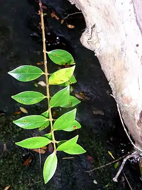 Syzygium fullagarii, commonly known as the scalybark, is a relatively large tree in the family Myrtaceae. It is found only on Lord Howe Island.[1] It grows to 20 metres (66 feet) tall, up to an altitude of 400 metres above sea level in sheltered areas, often in rainforest. The bark is reddish brown, usually flaking to the touch. The base of the tree is often heavily buttressed. Known for many years as Cleistocalyx fullagarii, however, in recent times it has been placed in the large genus Syzygium.