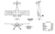 The Daphne is a two place, side-by-side configuration, strut-braced, high-wing, conventional landing gear equipped homebuilt. The fuselage is constructed of welded chromoly steel tubing, while the wings are made of wood, with one-piece plywood ribs. The entire structure is covered in aircraft fabric covering. Both ailerons and flaperons have been installed on the design. Hoerner wingtips were utilized, due to their inherent higher efficiency and low-drag features. [2] Szaraz drew heavily from the design of the Wittman W-8 Tailwind during the design process, and thus the fuselage, landing gear, and engine mount are very similar to that of the W-8. Plans were first offered for sale in the March 1969 edition of Sport Aviation.[3] In 1971, the plans were priced at $65, while the info packet was $2.[4]
