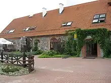 German Foreign minister Joachim von Ribbentrop used the palace throughout his sojourns at the nearby Wolf's Lair between 1941 and 1944.[6] The last proprietor of the estate, Heinrich Count von Lehndorff, was executed by the Nazis for his participation in the plot against Hitler that failed with the faulty assassination attempt on 20 July 1944, at the nearby Wolf's Lair wartime military headquarters of the Nazi regime. During World War II, the Germans operated a subcamp of the Stutthof concentration camp in the village, intended for female prisoners.[7][8]