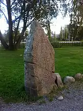 During the first millennium, Täby was part of the lands of the Svear, known as Svitjod. Remains from this period can be found in more than 37 runestones found in the municipality.[8] In the north of the municipality can be found, the remains of the 11th-century causeway known as Jarlabankes bro. The cross on Täby's coat of arms is found on the Risbylestenen, a runestone, in the northern part of the municipality. It is said that this runestone shows the first signs of Christianity reaching this part of Europe. During the Middle Ages, Täby was part of the Attundaland region. [9]