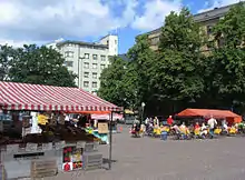 The square is used for daily (Mon-Sat) open-air markets,[4] as well as occasionally hosting other functions.[1] It is also partly used for car parking.[3] Following a design competition by the City of Helsinki, there are plans to develop the space in a more resident-friendly manner,[3] to include a fountain, new seating areas, a market hall and, in the winter, an ice rink.[5]