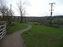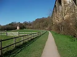 The park is connected to the Cefn Mawr Heritage Trail,[9] a longer circular walk,[10] and the Viaduct - Aqueduct Walk.[2][11] It is also located near the Offa's Dyke National Trail[12] and parts of Offa's Dyke on the otherside of the River Dee.