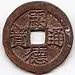 The brass Tự Đức Thông Bảo cash coins started being produced during the first year of the reign of Emperor Tự Đức, under the preceding emperors Minh Mạng and Thiệu Trị there were brass cash coins of 6 phần and 9 phần cast.[11] In Vietnamese these cash coins are always referred to as "Ðồng" (銅, copper) despite the fact that they were always made from Copper-alloys such as brass or bronze, this mistakenly leads to many French sources referring to them as "copper coins".[11] During the Nguyễn dynasty the value of these brass coins compared to that of zinc coins would increase over time, under Gia Long a brass Gia Long Thông Bảo (嘉隆通寶) cash coin was only worth 1.2 zinc Gia Long Thông Bảo cash coins, under Emperor Minh Mạng a single brass cash coin was worth three zinc ones, while in 1848 a 6 phần brass cash coin was only worth two zinc cash coins of the same weight, a decade later however they were worth four zinc cash coins.[11]