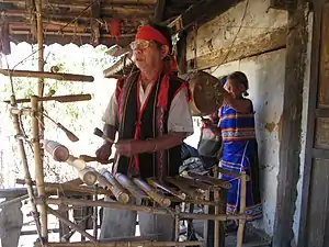 The t'rung (đàn T'rưng) is a traditional bamboo xylophone used by the Jarai people and Bahnar people in Vietnam's Central Highlands.[1] More complicated developments of the Jarai and Bahnar's xylophone have become used in Vietnamese traditional music ensembles (known as the đàn T'rưng) representing the music of the highland minorities.[2]