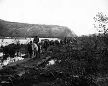 T. S. Lippy returning from the Yukon with a packtrain in 1899, carrying about one ton of gold