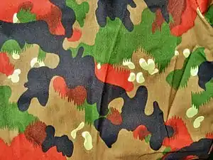 The TAZ 83 is a military camouflage pattern used by the Swiss Army for the Kampfanzug 57/70 (combat dress 57/70) and the TAZ 83 (Tarnanzug, camouflage dress 83).[2] It also is known as "Alpenflage" or "pizza camouflage" among collectors of militaria[2] as military surplus camouflage clothing it came on to the army surplus market in the 1990s.