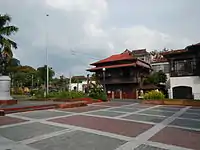 The town of Taal was founded by Augustinian friars in 1572.[6] In 1575, the town transferred later to the edge of Domingo Lake (now Taal Lake) in 1575. In 1732, it became the provincial capital of Batangas. In 1754, Taal Volcano erupted, endangering the town of Taal which stood at present-day San Nicolas. Threatened by the new danger, the townspeople, together with the Augustinian Francisco Benchucillo, sought refuge in the sanctuary of Caysasay.[7][8] The provincial capital was also transferred to the then-town of Batangas in the same year.[9]