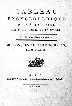 The Tableau encyclopédique et méthodique des trois regnes de la nature was an illustrated encyclopedia of plants, animals and minerals, notable for including the first scientific descriptions of many species, and for its attractive engravings. It was published in Paris by Charles Joseph Panckoucke, from 1788 on. Although its several volumes can be considered a part of the greater Encyclopédie méthodique, they were titled and issued separately.