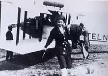 It was in April 1921 when the Aviation Regulations 航空取締規則 (Kōkū torishimari kisoku) was promulgated in Japan, and after the pilot licensing system 操縦免許制 (Sōjū menkyosei) was established, she was licensed a third-class airplane aviator (License no.38) on March 21, 1922[6] on her second challenge, and became the first woman aviator in Japan.[7] The same year and soon after obtaining her aviation license, Hyōdō participated in the flight competition for the third-class aviators hosted by the Imperial Aeronautical Association 帝国飛行協会 (Teikoku Kōkū Kyōkai) ja:日本航空協会. She was the 10th out of 15 in the speed category.