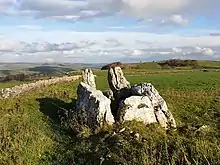 Five Wells is a Neolithic chambered tomb on Taddington Moor and it is a protected scheduled ancient monument. It was first excavated by the local archaeologist Thomas Bateman in 1846. He discovered the remains of at least twelve human skeletons in the stone-paved chambers.[2]