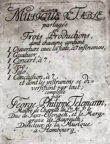 Frontispice of the score for “Musique de table” (Tafelmusik)